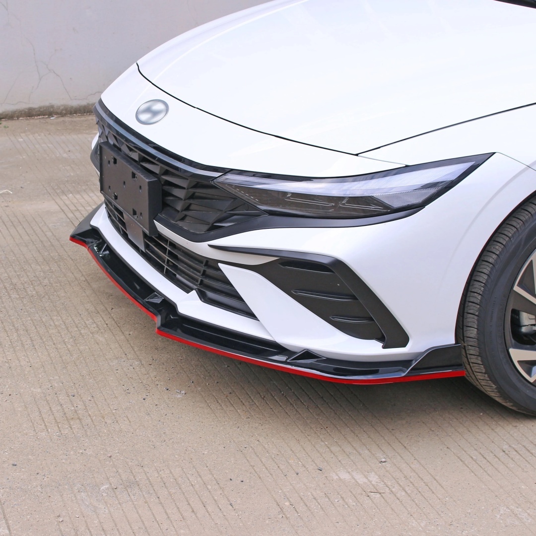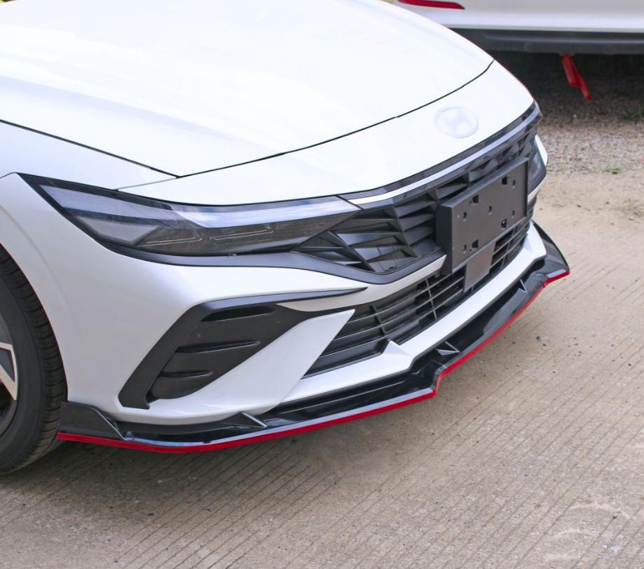 Сплиттер переднего бампера Hyundai Elantra 2023+ состоит из 3 деталей. Отлично дополнит и защитит передний бампер.