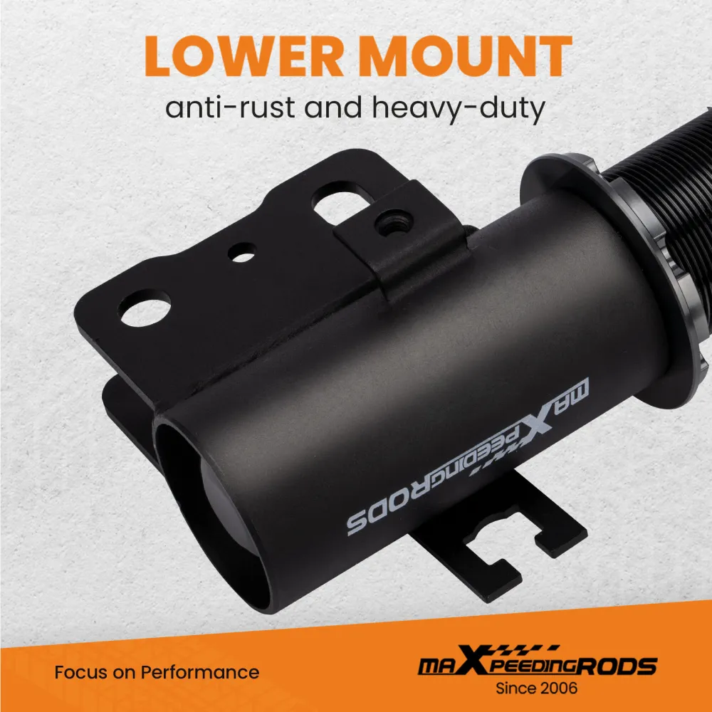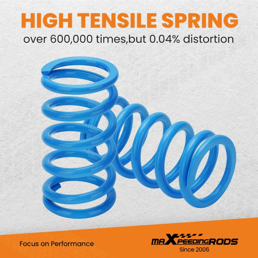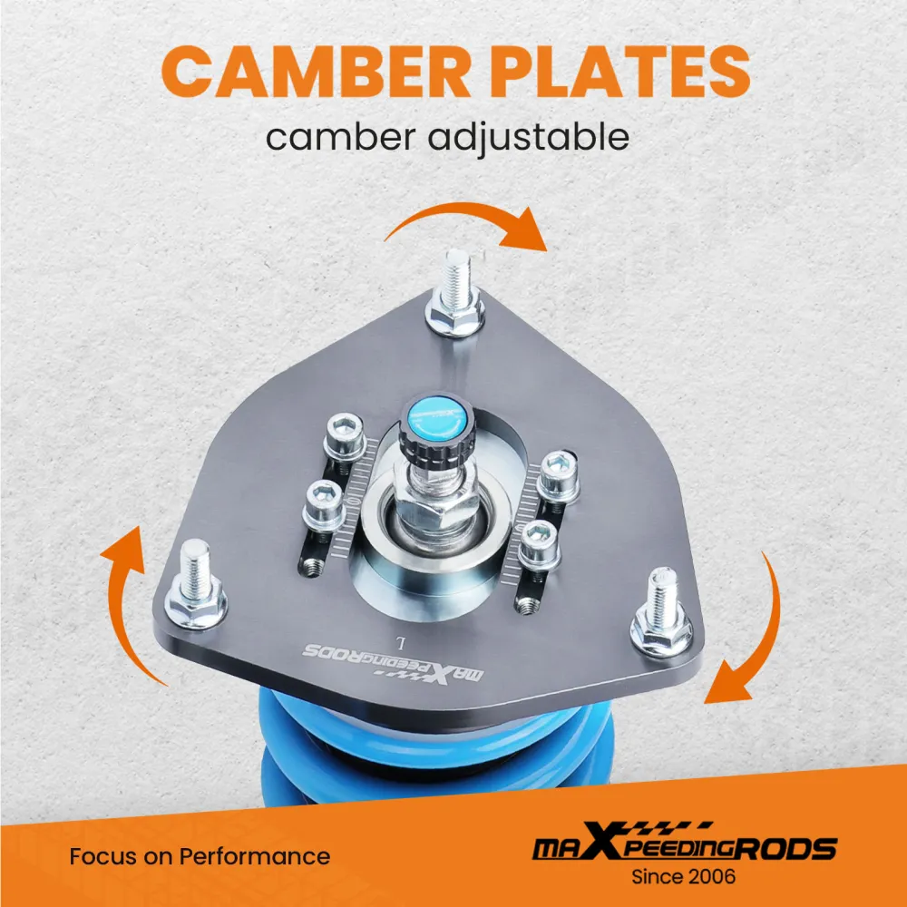 MaXpeedingRods T6 lowering coilover, standard with adjustable rebound damping, separate height adjustment without changing preload, developed damping oil and upgraded racing springs, adjustable camber plate(for some vehicles) and decent outlook, offers you more ability to tune your suspension on performance and gives your vehicle more impressive appearance. Besides, all our coilover are assembled in the dust-free factory, which turns out good quality and long life.